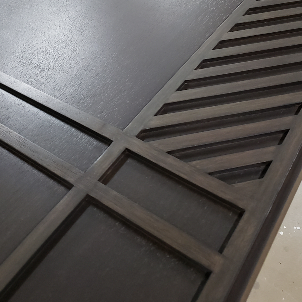 Sleek, minimalist doors with smooth or textured surfaces, ideal for both residential and commercial spaces. Custom finishes available (High pressure laminate, veneer, painted, etc.).